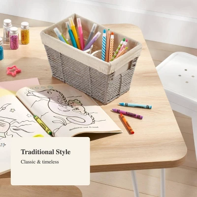 Keep your home organized and stylish with this Small Twisted Paper Rope Tapered Basket from Brightroom™. Showcasing paper rope detailing for a natural appeal, this spacious rectangular basket allows ample room to stow away anything from your kids’ toys to throw blankets or magazines with ease, keeping your floors and tables clean and clutter-free. The open top allows you to quickly and easily see what’s inside, and built-in handles lend easy transport from room to room. Use this paper rope basket near a sofa or entryway console to stow away extras in style.